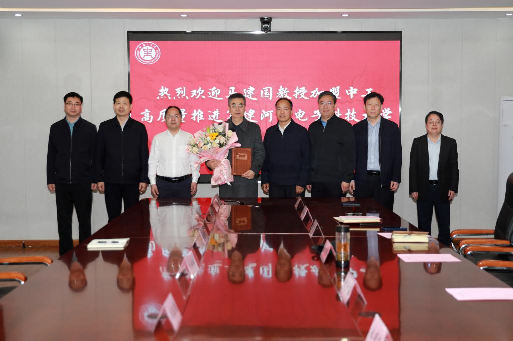 马建国感谢学校给予的支持和信任,表示将会全身心投入工作,为学校高水平筹建河南电子科技大学贡献力量。
