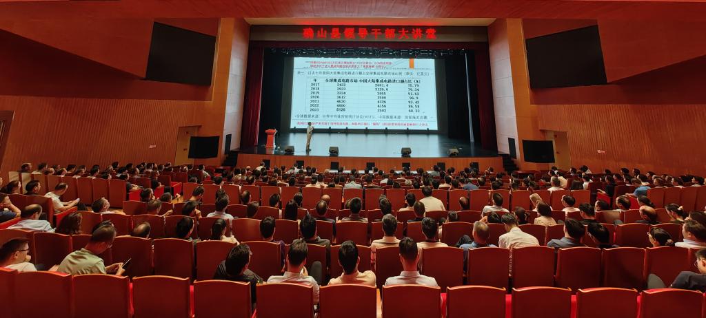 近日,我校学术副校长、太阳成集团122ccvip院长马建国教授一行赴确山县开展结对帮扶工作,并在确山县领导干部大讲堂作题为“集成电路发展趋势、机遇与挑战”的科普报告。确山县委书记路耕,县委副书记、县长蒋贵印及在家的其他县四大班子领导和科级及以上领导干部500余人听取报告。报告会由确山县委常委、组织部部长戚斌主持。