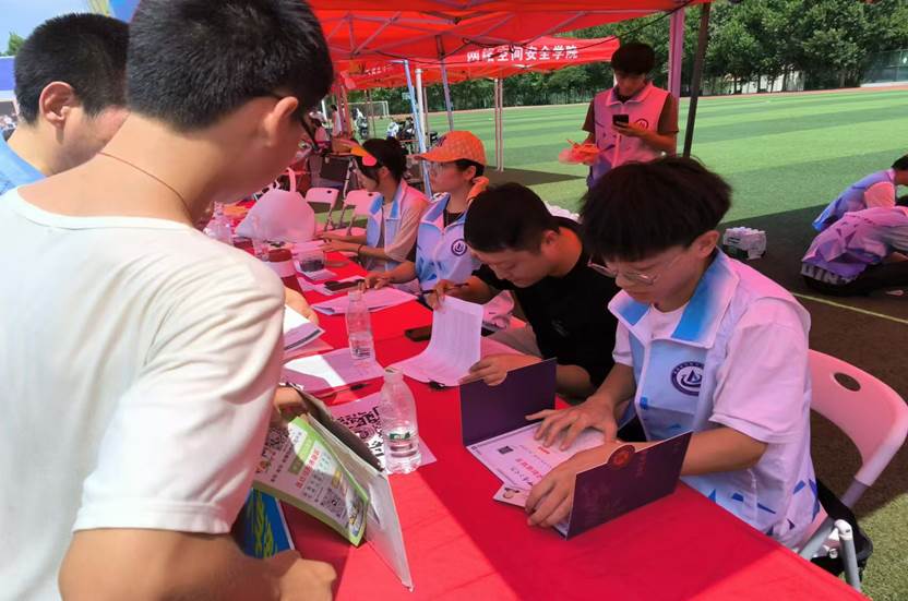 班主任老师及迎新工作者为新生办理入学手续