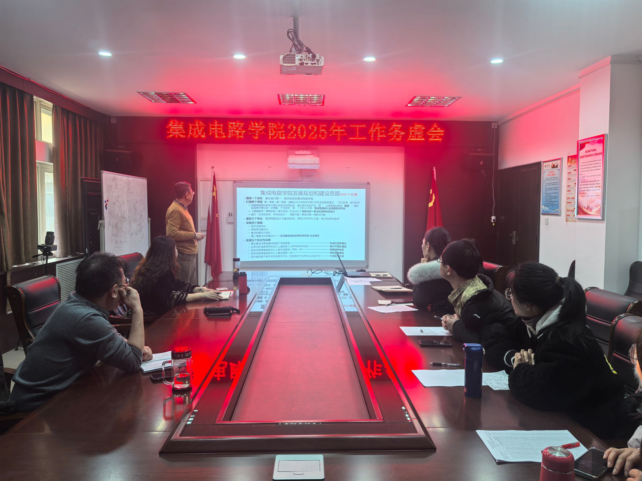 马建国对学院未来发展规划和2025年重点工作提出了设想和要求。他强调,集成电路作为国家战略性新兴产业的重要组成部分,对于国家经济发展和科技进步具有不可替代的作用,在学校筹办筹建河南电子科技大学中心任务中承担着重要任务。因此,学院必须紧跟时代步伐,加强自身建设,提升创新能力,努力培养更多高素质集成电路人才。