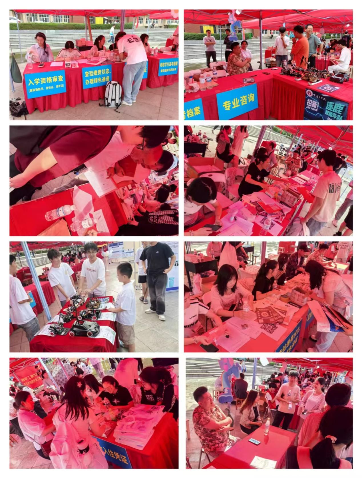 迎新当天在南苑、北苑分别设置迎新报到点,科学设置引导接待、报到注册、咨询答疑、物资发放等功能区域,并贴心提供行李暂存、指引标识和休息区等服务。学院提前与校内后勤、教务、财务等多部门协同联动,实现信息互通、问题即时响应,为新生铺设了一条“低延迟、高带宽”的报到通道。