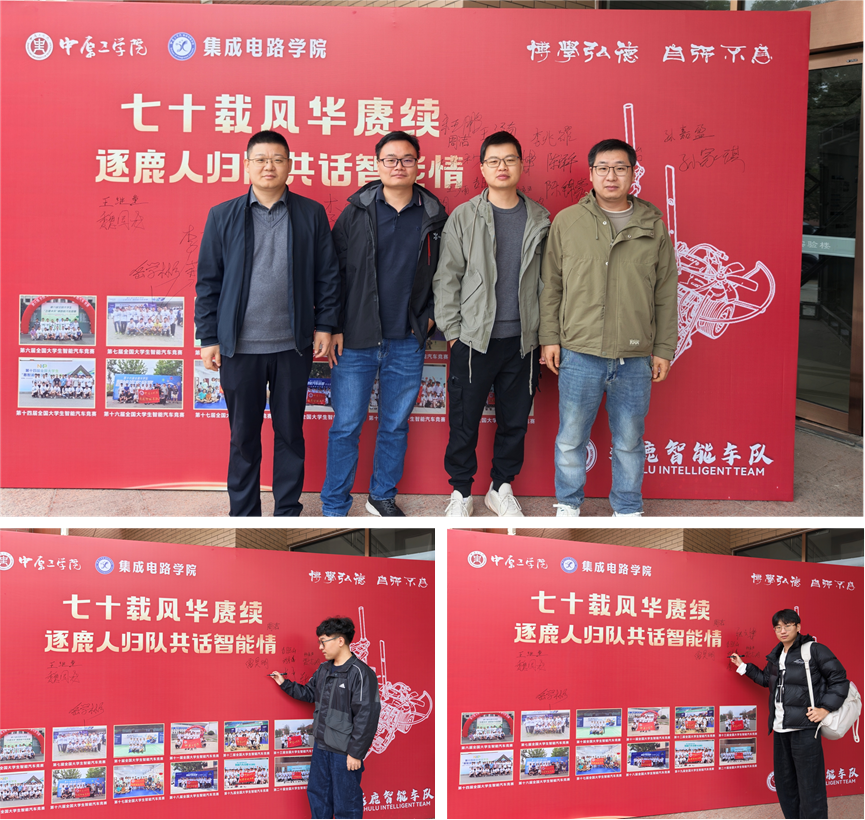 随后,全体返校校友与学院领导、教师代表及逐鹿智能车队队员在楼前合影留念。镜头定格了灿烂的笑容,也凝聚了“逐鹿人”团结奋进、薪火相传的精神风貌。