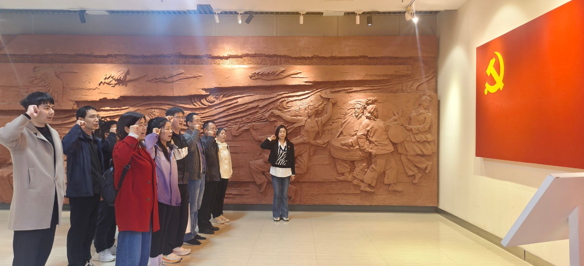 活动首站走进焦裕禄纪念馆。泛黄的历史照片、珍贵的实物遗存,生动再现了焦裕禄同志“心中装着全体人民,唯独没有他自己”的公仆情怀,让大家深刻领悟“为民造福是最大政绩”的精神内涵。参观结束后,全体党员面向党旗庄严宣誓,重温入党誓词,砥砺初心使命。