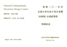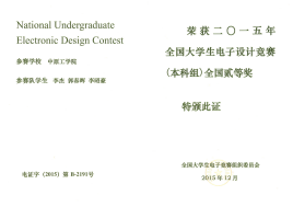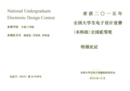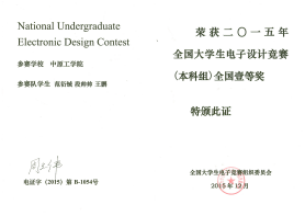2015年度全国电子设计大赛国家一等奖3项、二等奖5项;省级一等奖13项、省级二等奖7项、省级三等奖17项。