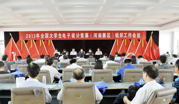 2013年全国大学生电子设计大赛河南省赛区组织工作会议日前在我校北区基础实验楼九楼会议室召开。我校副院长曹健、教务处处长李惠杰、赛区组委会专家组组长王东云教授、副组长解放军信息工程大学陆应华副教授、赛区组委会专家成员以及来自河南省37所高校的86名代表参加了本次会议。会议由全国大学生电子设计大赛河南省赛区组委会秘书长、我校教务处副处长陈金环教授主持。