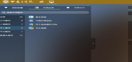 第二步:点击可用应用中的学工服务,点击学生请假