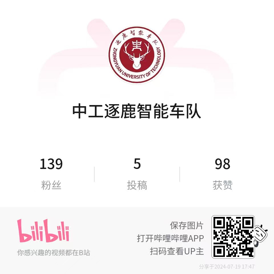 中工逐鹿智能车队创办有微信公众号和B站视频号,欢迎同学们关注: